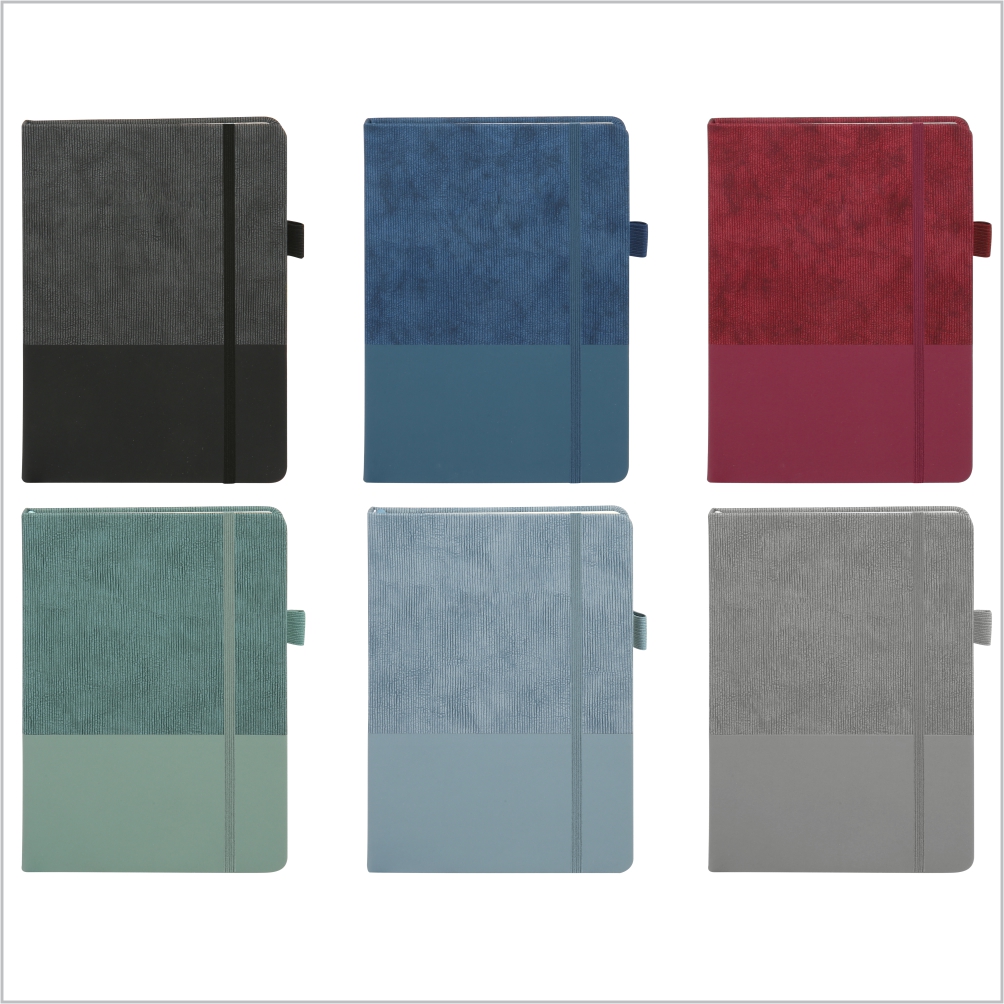 Loading... Please wait...PU hard cover notebook, Coloured matching elastic retaining closure and ribbon page marker and 6mm pen loop