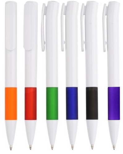 solid white barrel,twist action, solid colored clip and rubber finished grip, 1.0mm slim refill.