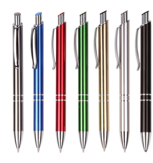 Mirror anodized aluminum barrel with rings, solid colored top, metal clip, polished chrome plated trims