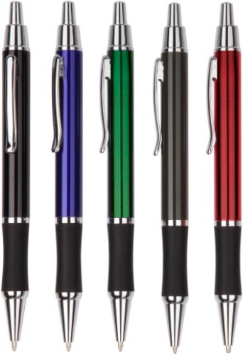 Metalic coloured barrel, with shining chrom underneath to have silver logo engraved out.