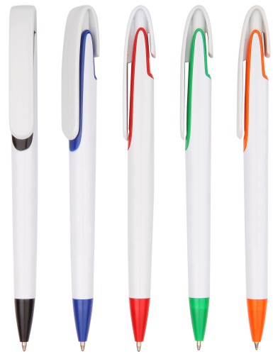 Solid white barrel and clip, solid colored top of barrel and tip.
