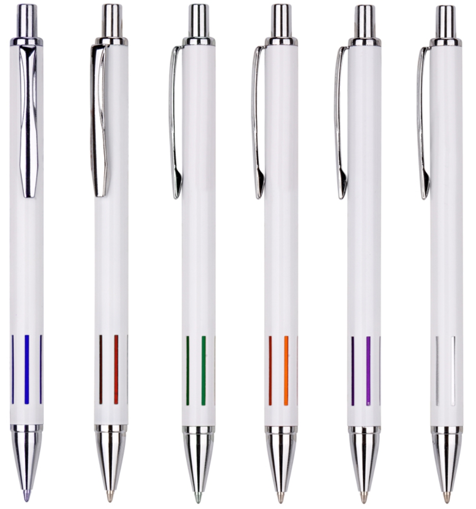 White barrel with black, sliver, green, red, blue, orange, purple.