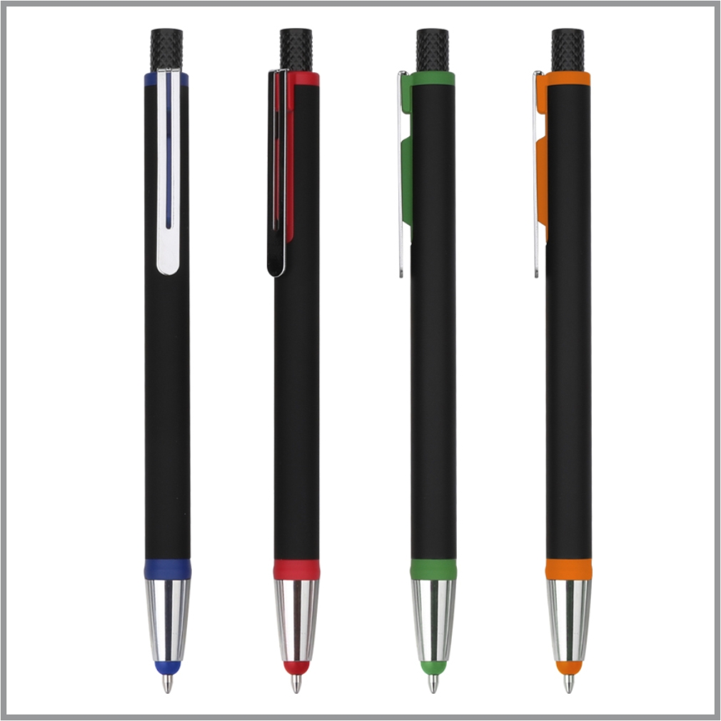 Loading... Please wait...Click action metal ball pen, black rubberized aluminum barrel, matt metalic sprayed rings,